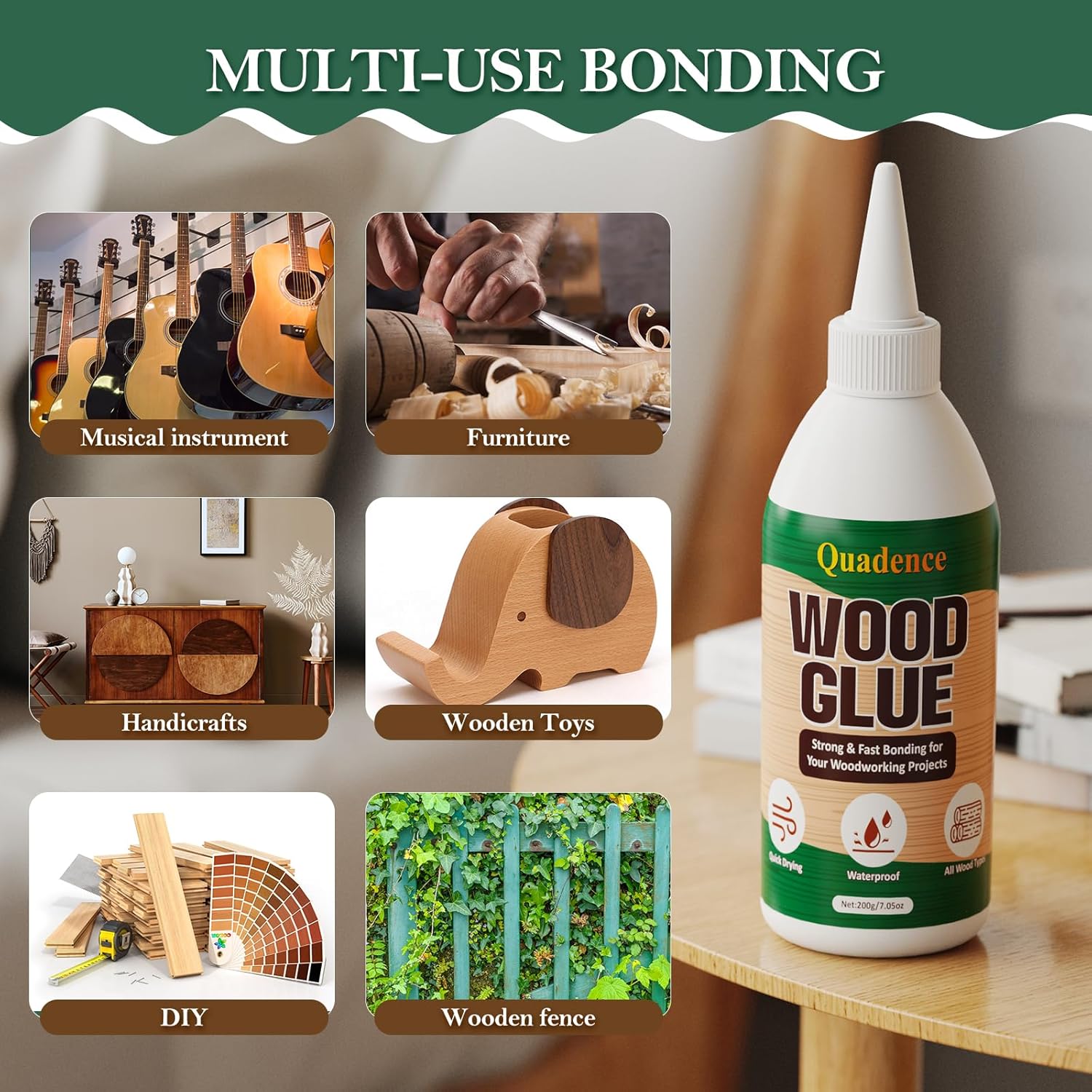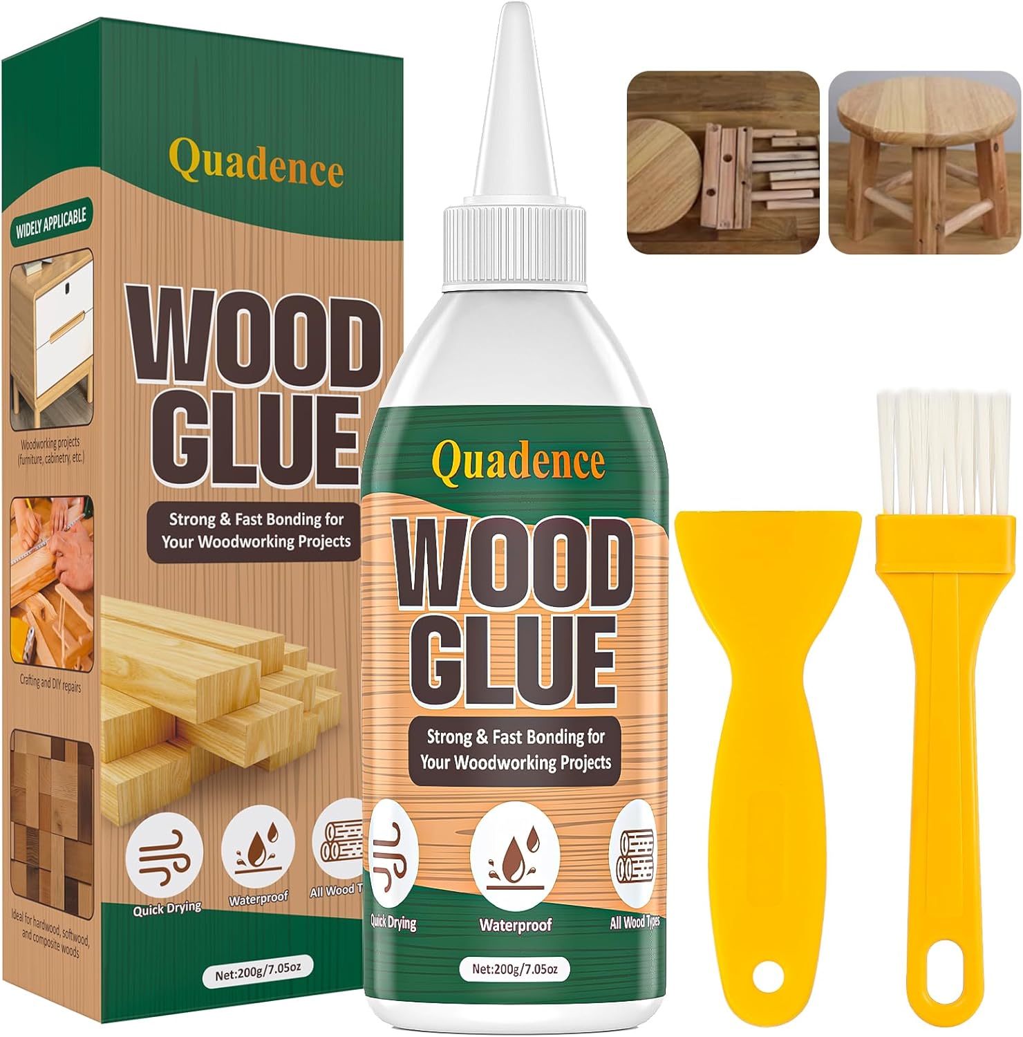 Wood Glue for Furniture Heavy Duty, Quadence Waterproof Wood Glue Fast Drying Super Glue for Woodworking, Furniture Glue for Crafts, Furniture, Baseboard, cabinets, Door, Interior & Outdoor (200g)